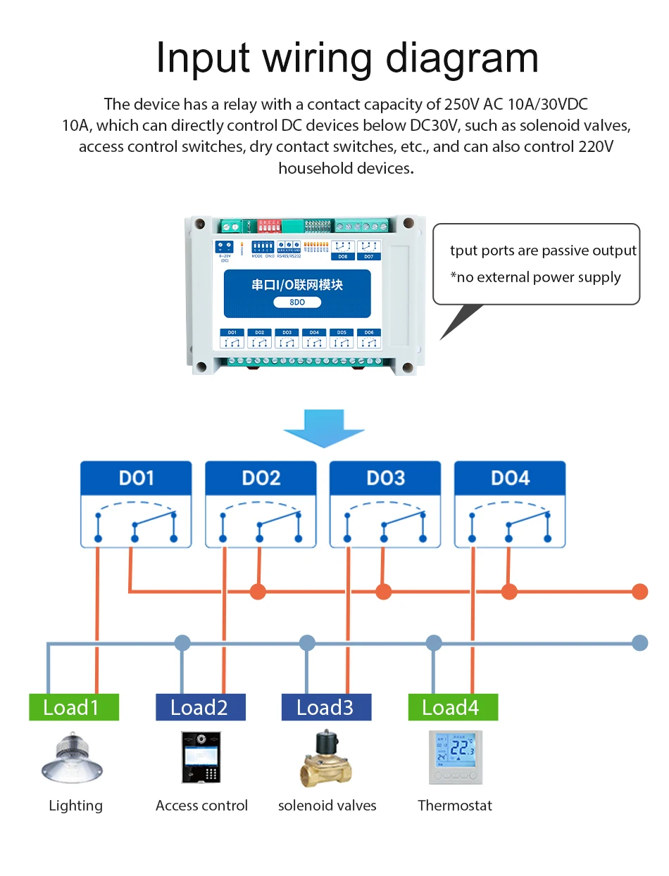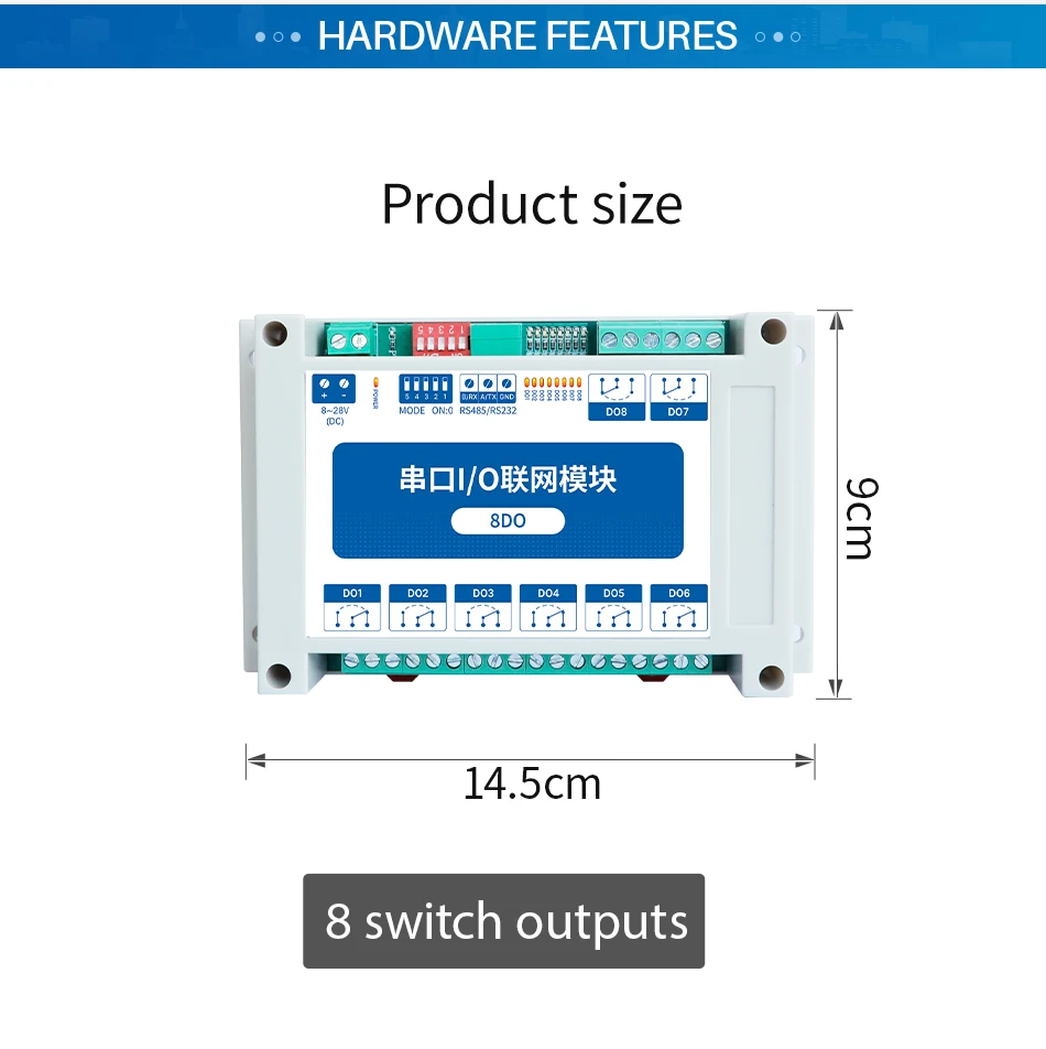 Модуль ввода-вывода Modbus RTU, сетевые модули, последовательный порт RS485, интерфейс 8DO CDEBYTE, рандомная установка, 8 28VDC IoT