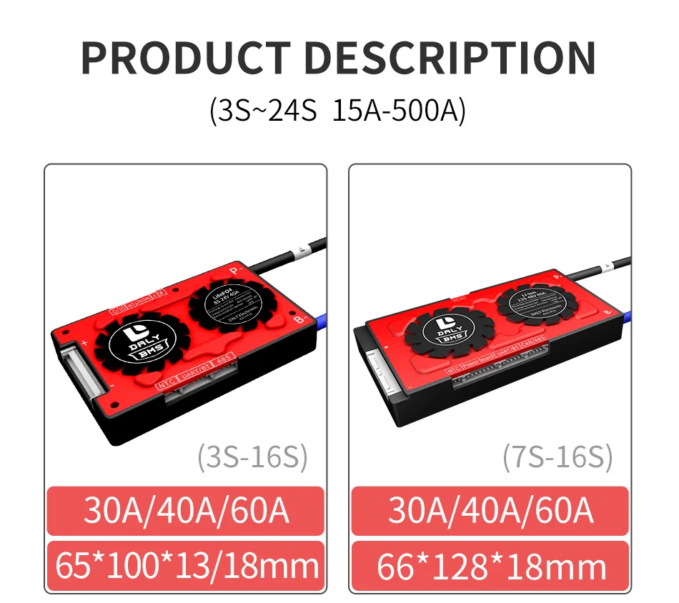 Daly BMS 3s 4s 7s 10s 13s 15s 16s 3S ~ 24S 12V 36V 48V lifepo4 Li-Ion 30a 40a 60a 80a 100a daly smart bms