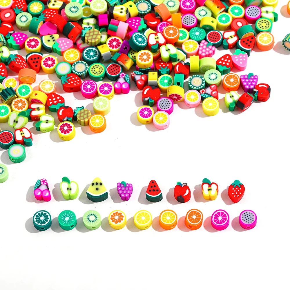 30-100 шт.лот 6-10 мм фруктовый смайлик Полимерная глина бусины раз...