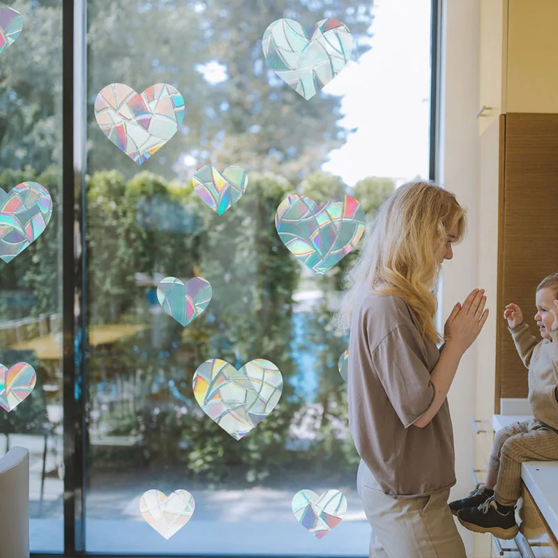24 Стиль пленка для украшения окна Радужная Призма в виде сердца наклейки домашнего декора гостиной ванная комната балкон электростатического оконное стекло стикер