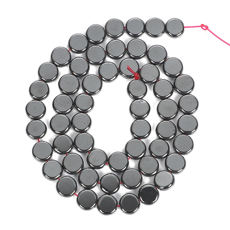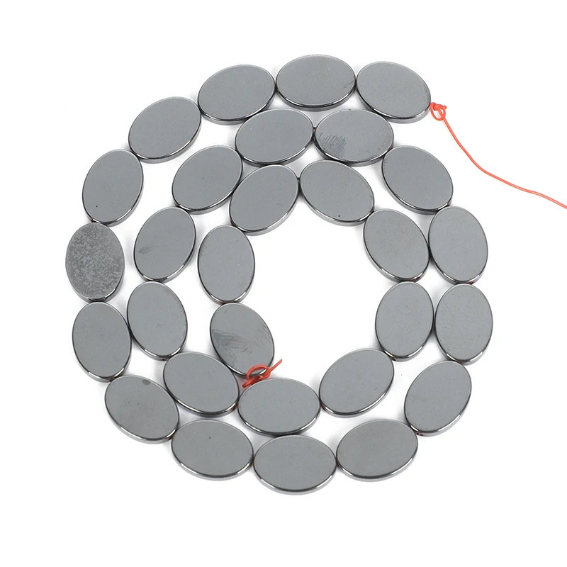 Плоские Овальные черные гематитовые бусины из натурального камня, б...
