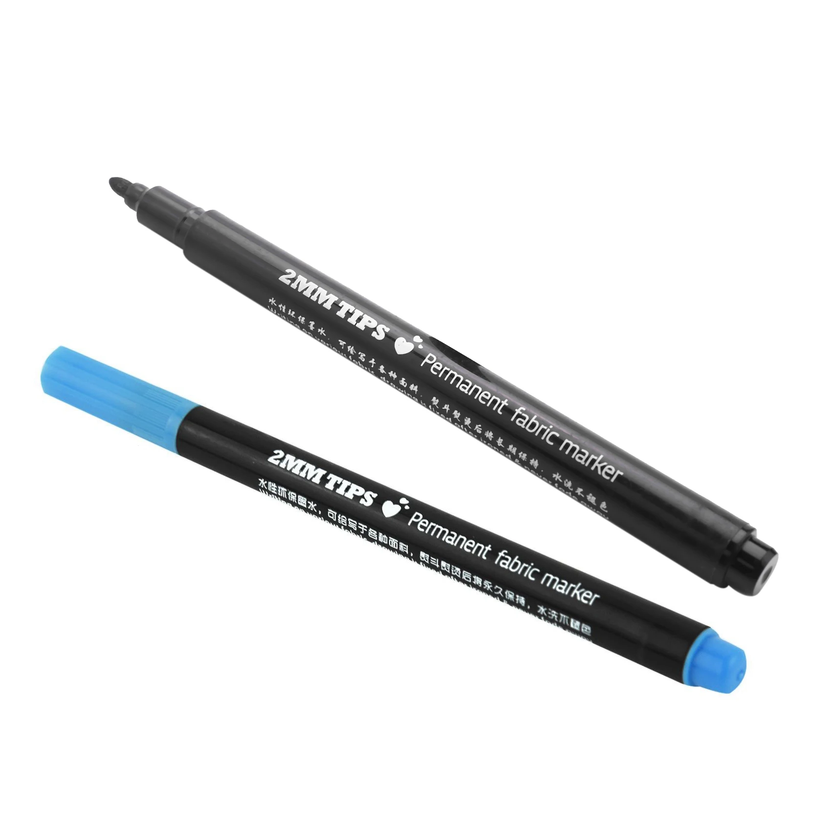 2 х тканевых маркера перманентные цвета для DIY текстильной одежды футболки обувь, черный и синий