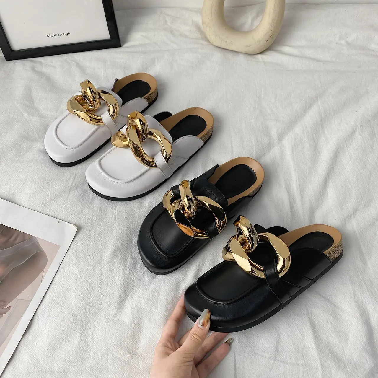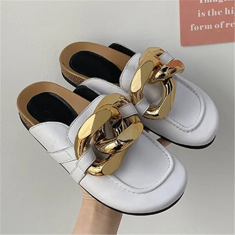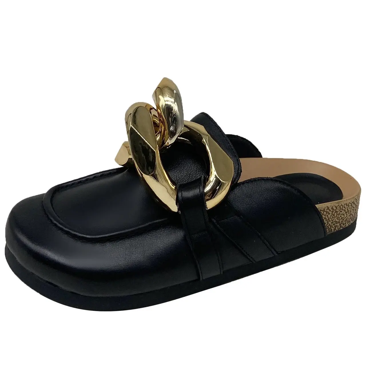 Женские босоножки на пробковой подошве, летние шлепанцы без задника, с большой золотой цепочкой, на платформе, 2021