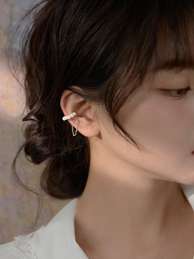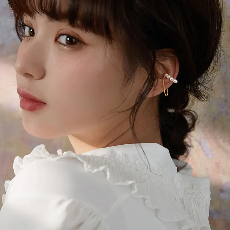 Серьги-каффы женские из серебра 925 пробы, с жемчугом