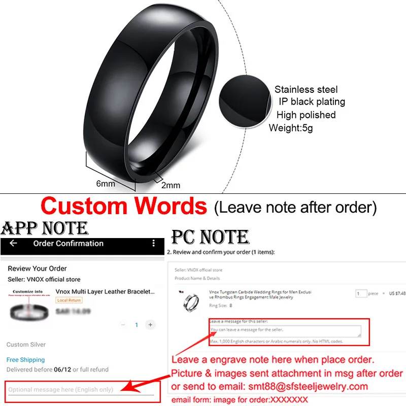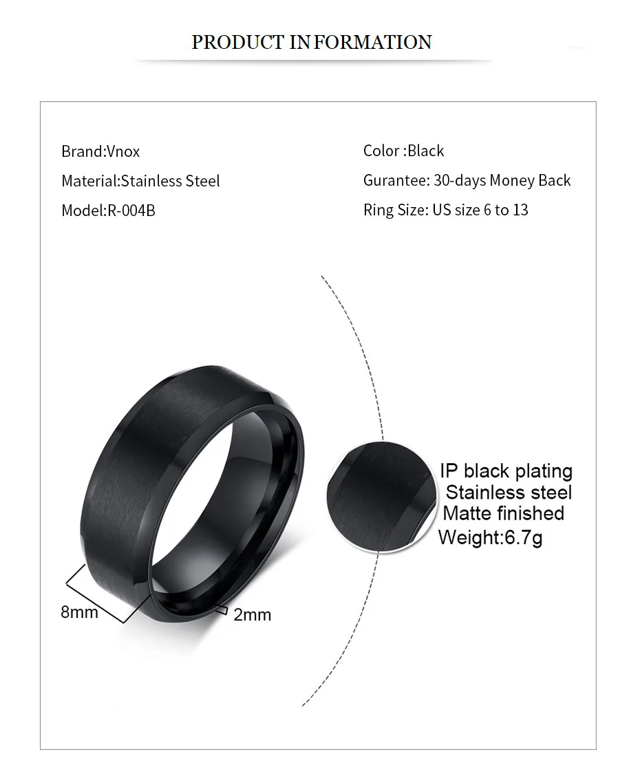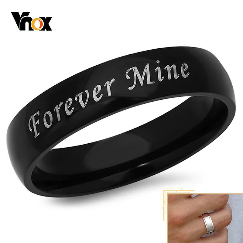 Vnox Бесплатные Индивидуальные Имя Кольца для мужчин и женщин, в классическом стиле; Основная из нержавеющей стали, подарок на день Святого Валентина, благодаря лазерной гравировки цитаты значимый подарок