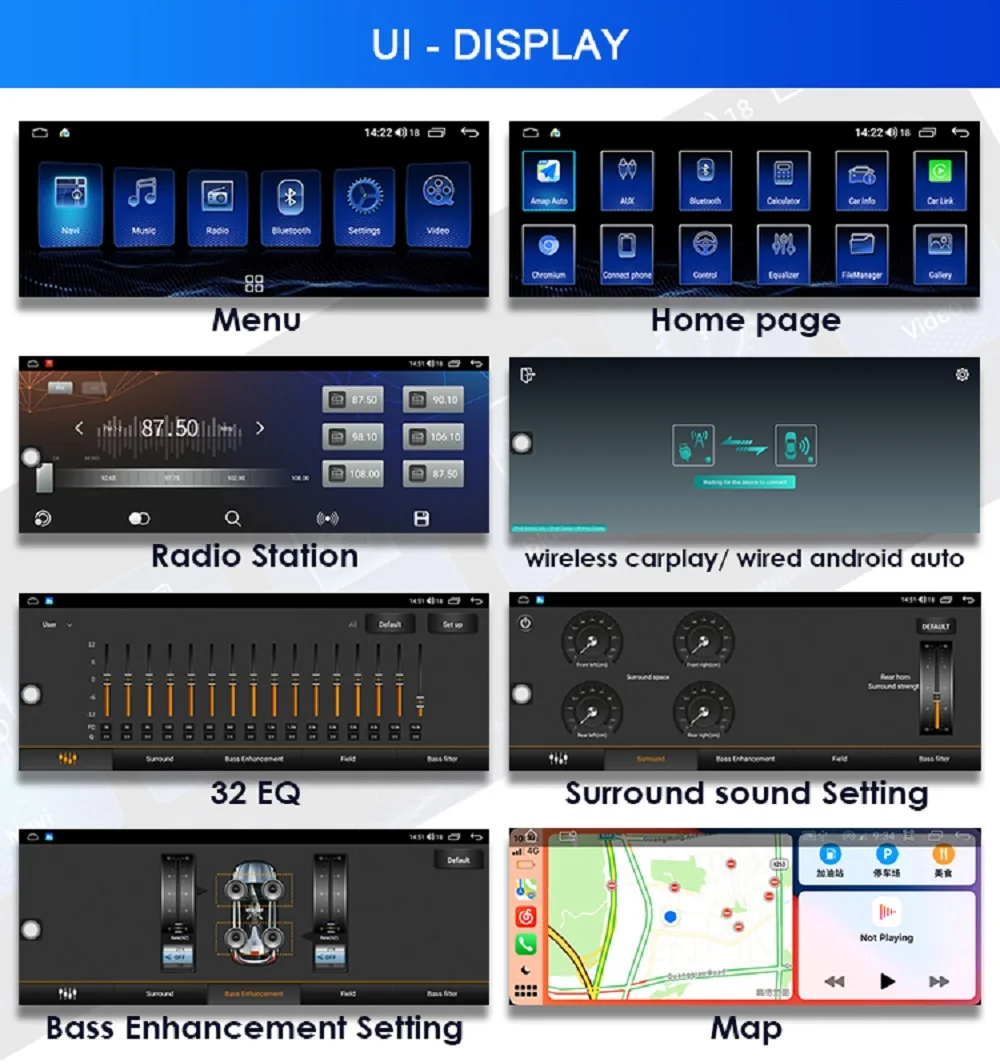 6,4 ГБ + 64 ГБ и 6 ГБ + 128 Гб Встроенный carplay,DSP.
