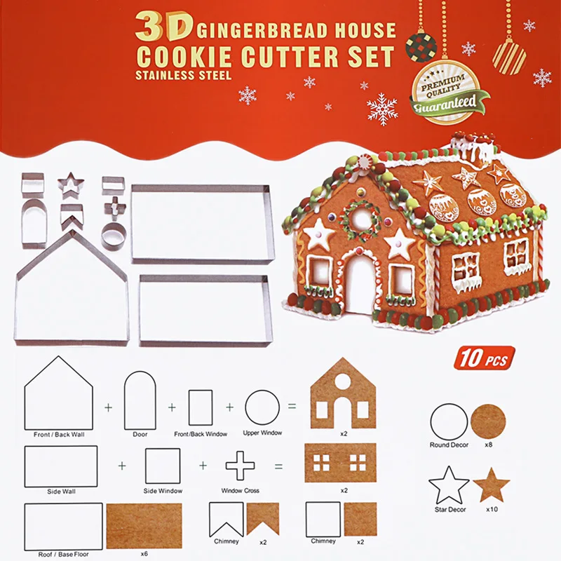 Новинка 3D Трехмерная форма для печенья из нержавеющей стали Рождественский имбирный Домик 10 комплектов инструментов для выпечки оптом