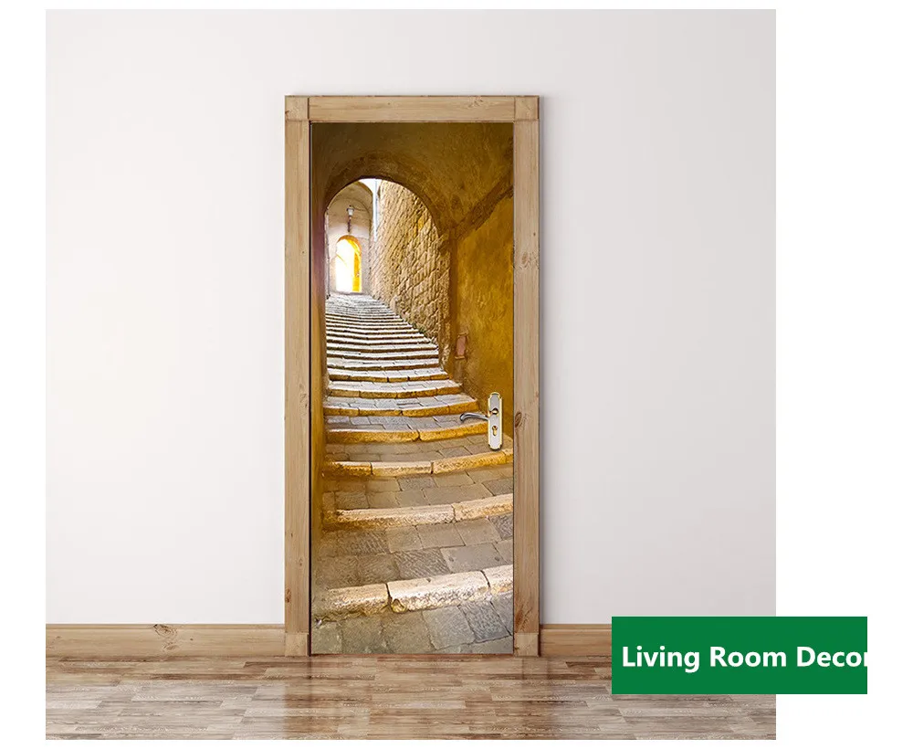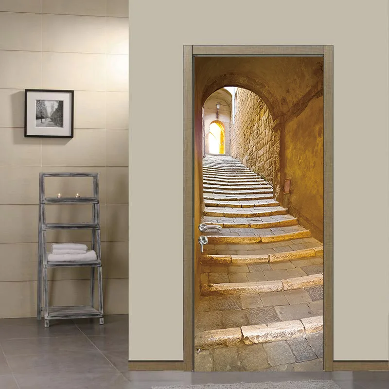 3D искусственный Ретро каменный шаг лестница коридор шаблон дверь наклейка самоклеющаяся виниловая настенная наклейка водонепроницаемый природный пейзаж домашний декор