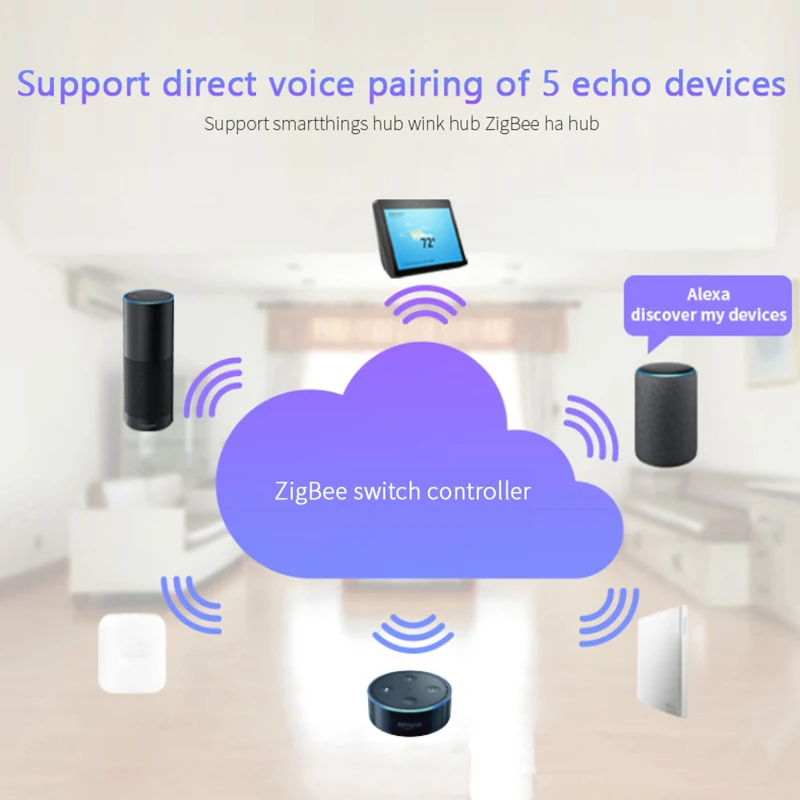 4. Учитывая состояние нестабильной сети или сети, коммутатор ZigBee 3,0 действительно незаменим для соединения с шлюзом ZigBee для формирования домашней локальной сети, больше не беспокойтесь о И слабой сети, легко получить контроль через подключенные устройства до тех пор, пока есть стабильный сигнал ZigBee; Позволяет больше устройств, подключенных через ZigBee, чем протокол WiFi; Smartthings поддерживается для этого модуля переключения ZigBee Специально.
