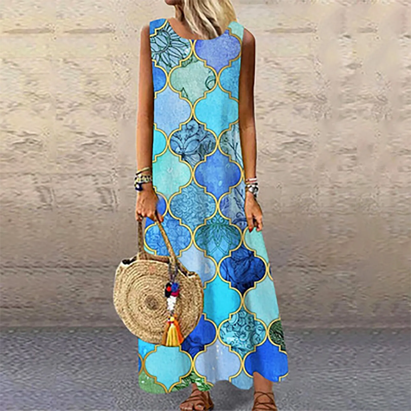 Платья для женщин в африканском стиле модное платье с О-образным вырезом без рукавов с принтом Для летних вечеринок скамья Слинг Холтер Макси платье Jurken Zomer 2021 Dames Robe Ete