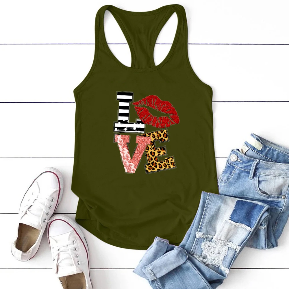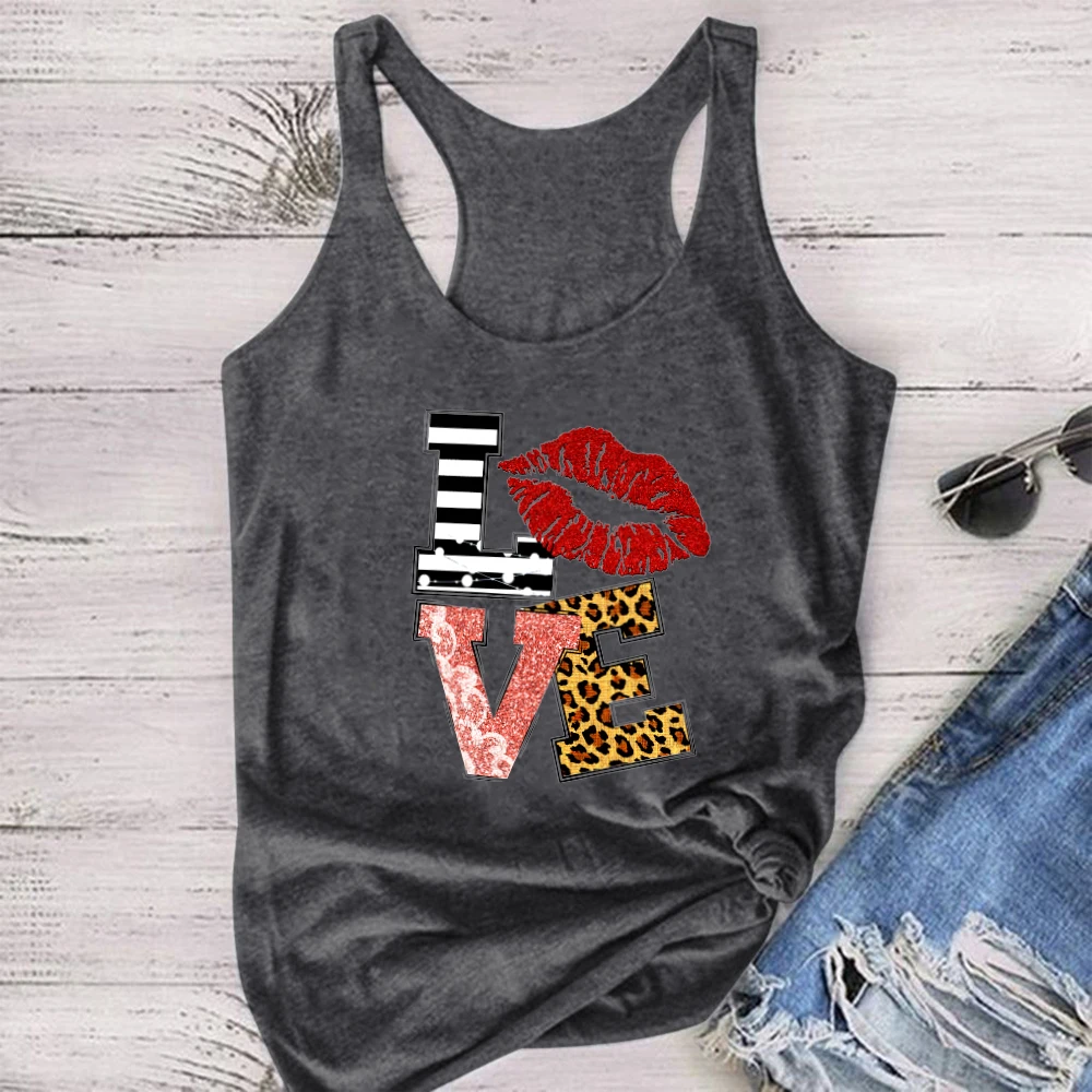 PatternRed Lips Love Print Funny Tank Tops Women