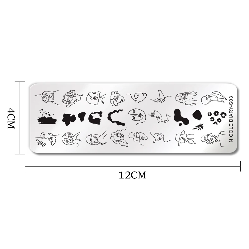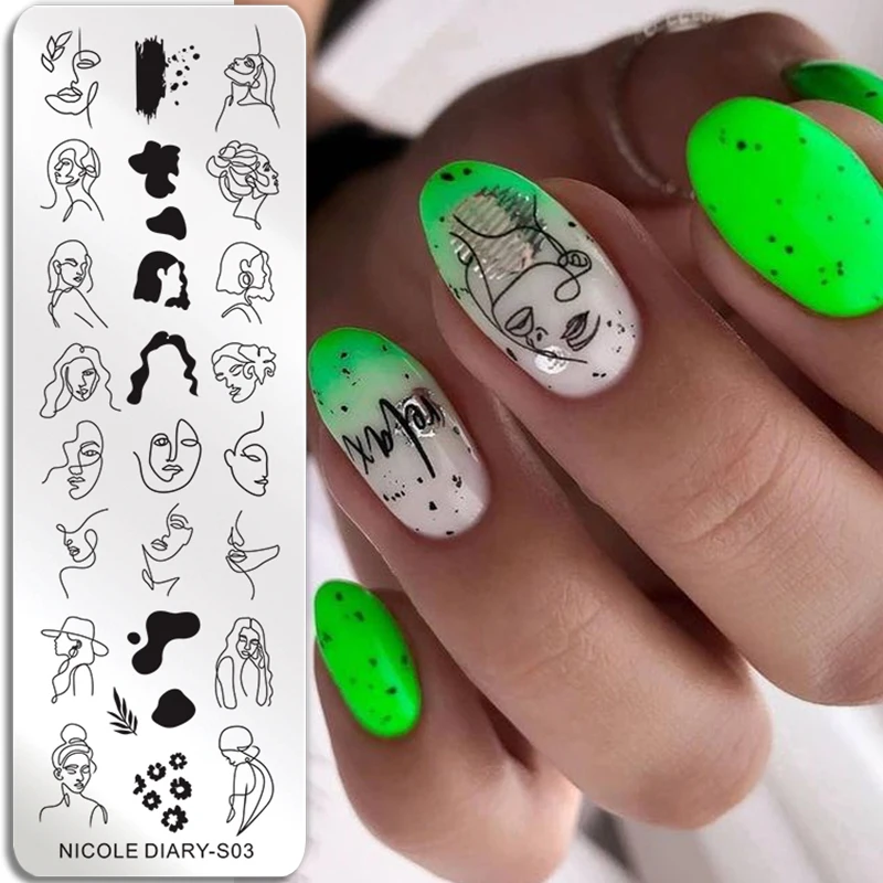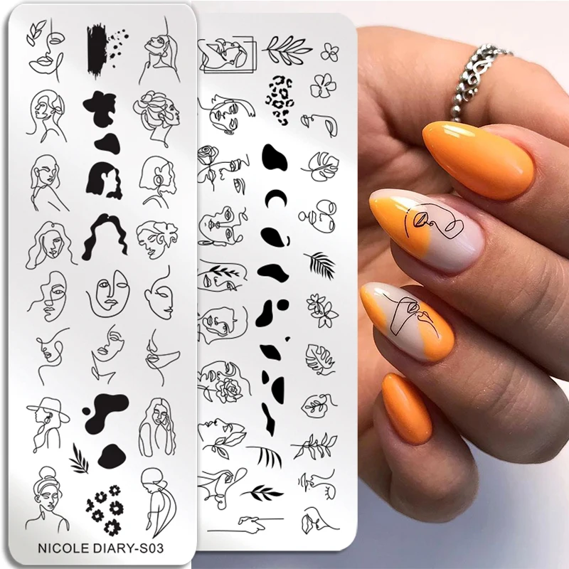 Трафареты NICOLE DIARY для штамповки человеческого лица, пластины с тропическими листьями для нейл-арта, шаблон для французского цветочного оформления