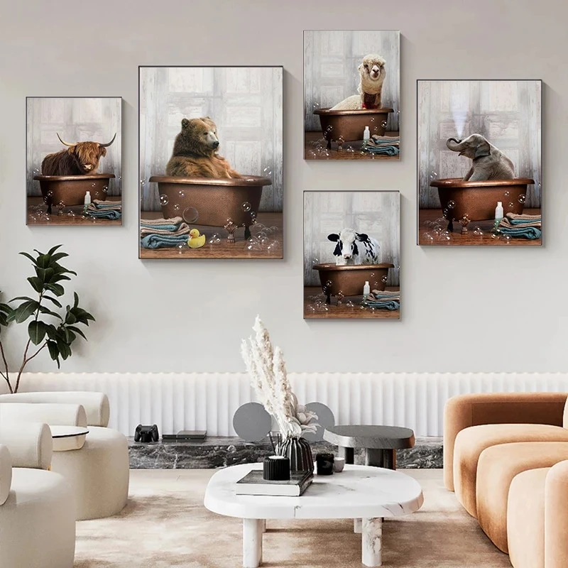 Медведь Альпака корова слон Душ Ванна Холст Картина Скандинавская стена художественные плакаты и принты настенные картины для украшения ванной комнаты