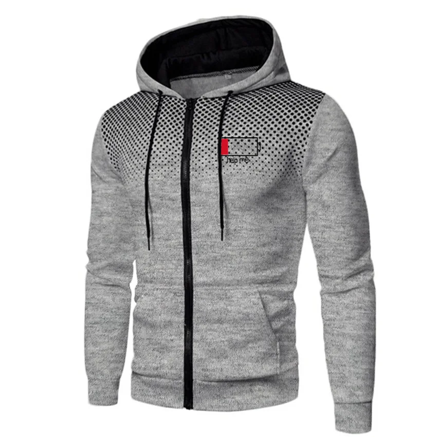 Мужская спортивная толстовка на молнии, с принтом батарейки, в европейском и американском стиле, для отдыха, для осени и зимы