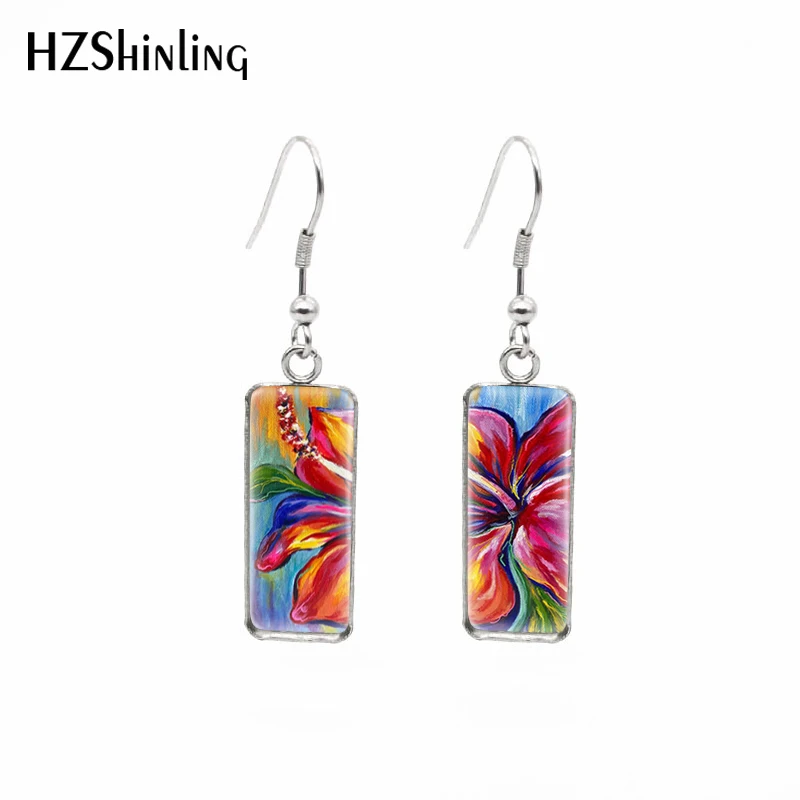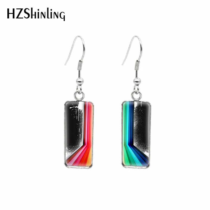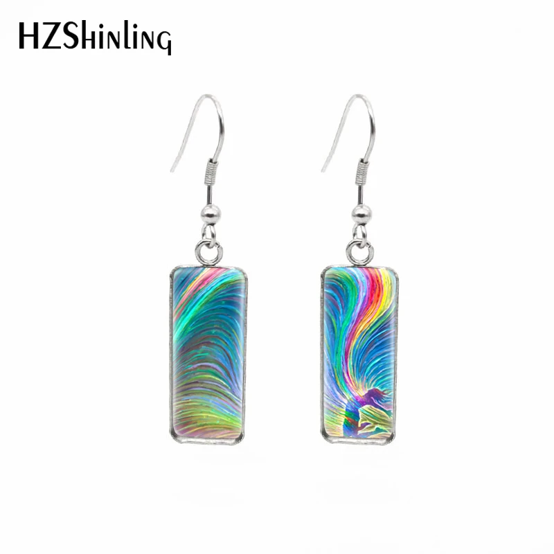 2021 новые прямоугольные серьги с радужной росписью, художественные серьги с крючком для рыбы в стиле пейзажа, Стеклянные Кабошоны, ювелирные изделия ручной работы