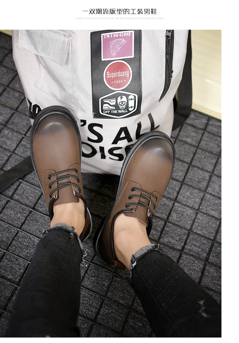 Обувь для влюбленных пар; В стиле Оксфорд свободного кроя, Кожаные Мокасины, декорированные ботинки до лодыжек унисекс британский стиль, женские туфли-лодочки ботинки на шнуровке ботинки; Резиновые сапоги из водонепроницаемого материала; Botas Hombre; Большие Size35-47
