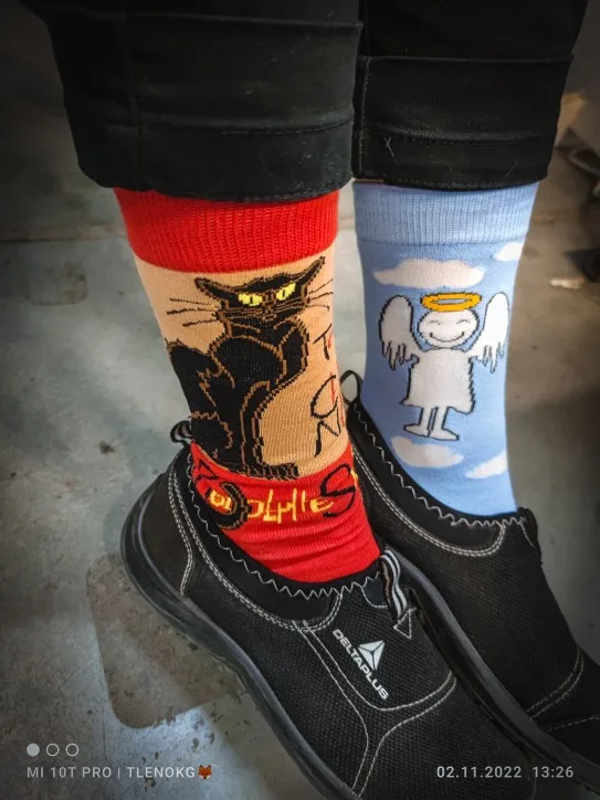 На 38 размер носки подошли, думаю, и на ногу побольше тоже налезут. Плотность средняя, пойдут на осень-весну или не очень холодную зиму, летом в них будет жарко. Этикетки никакой не было, но на ощупь приятные, не колятся. Скорее всего, по составу там хлопок + синтетика. Рисунок яркий, четкий, как на фото у продавца. Доставка была долгая, но все пришло в целости.