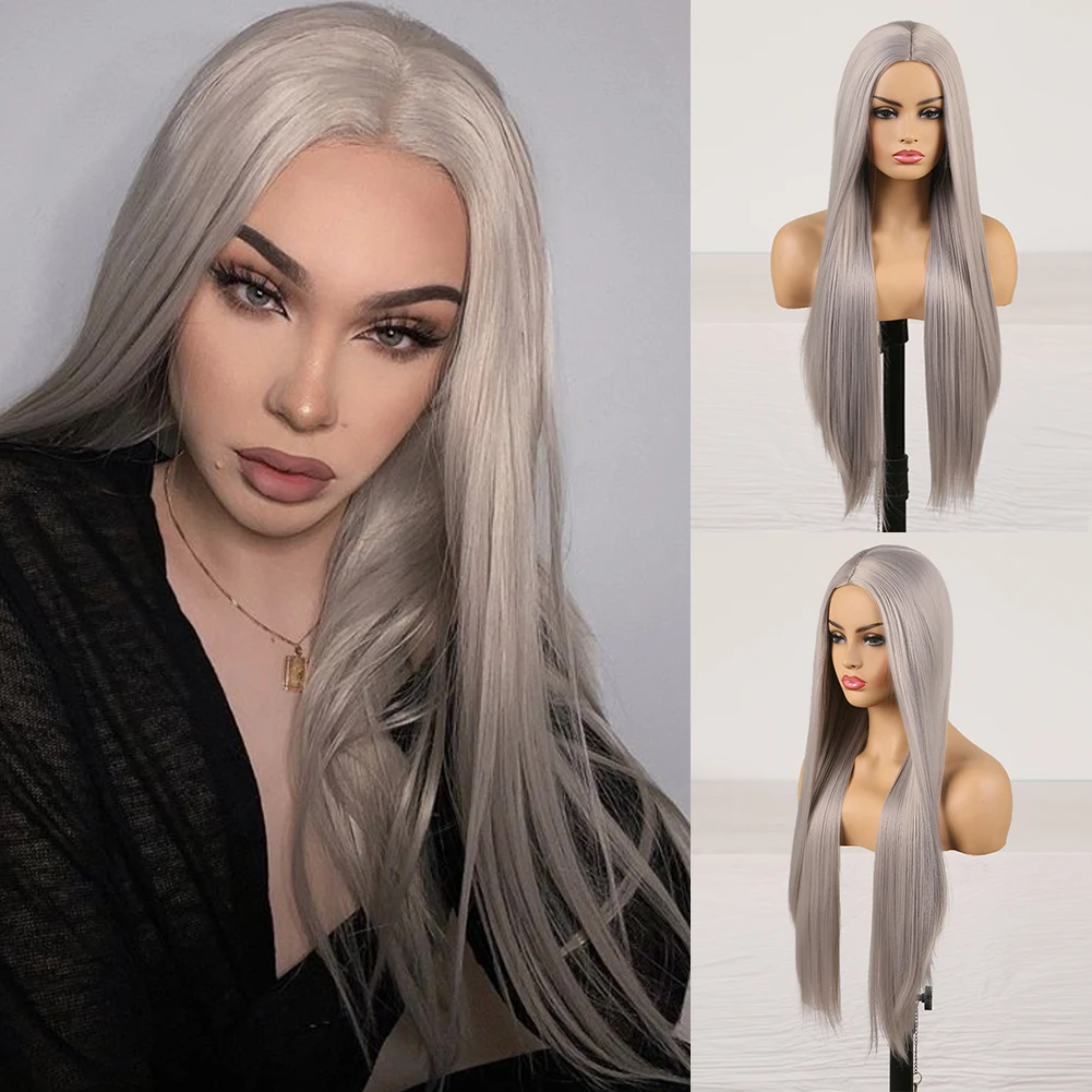 Модный длинный черный прямой парик JOY BEAUTY, Белый синтетический...