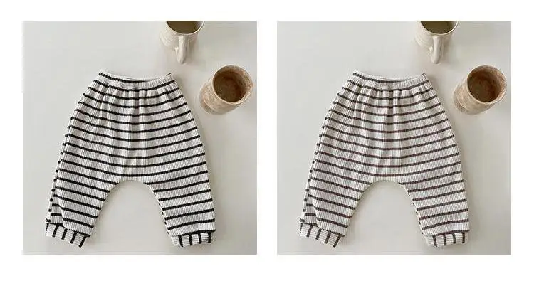InsКоллекция 2022 года, одежда для маленьких мальчиков весенние штаны хлопковая Домашняя одежда брюки для маленьких девочек штаны в полоску для новорожденных возрастом от 0 до 24 месяцев осенняя одежда для маленьких детей
