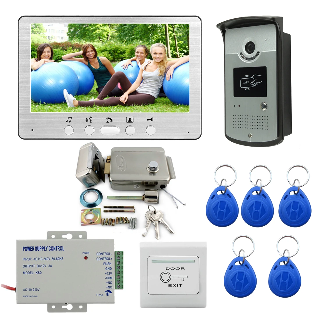 Видеодомофон с замком, 7-дюймовый видеодомофон, дверной монитор, дверной звонок, электронный RFID-замок, система контроля доступа