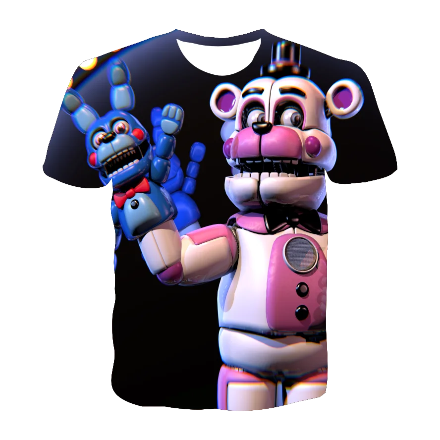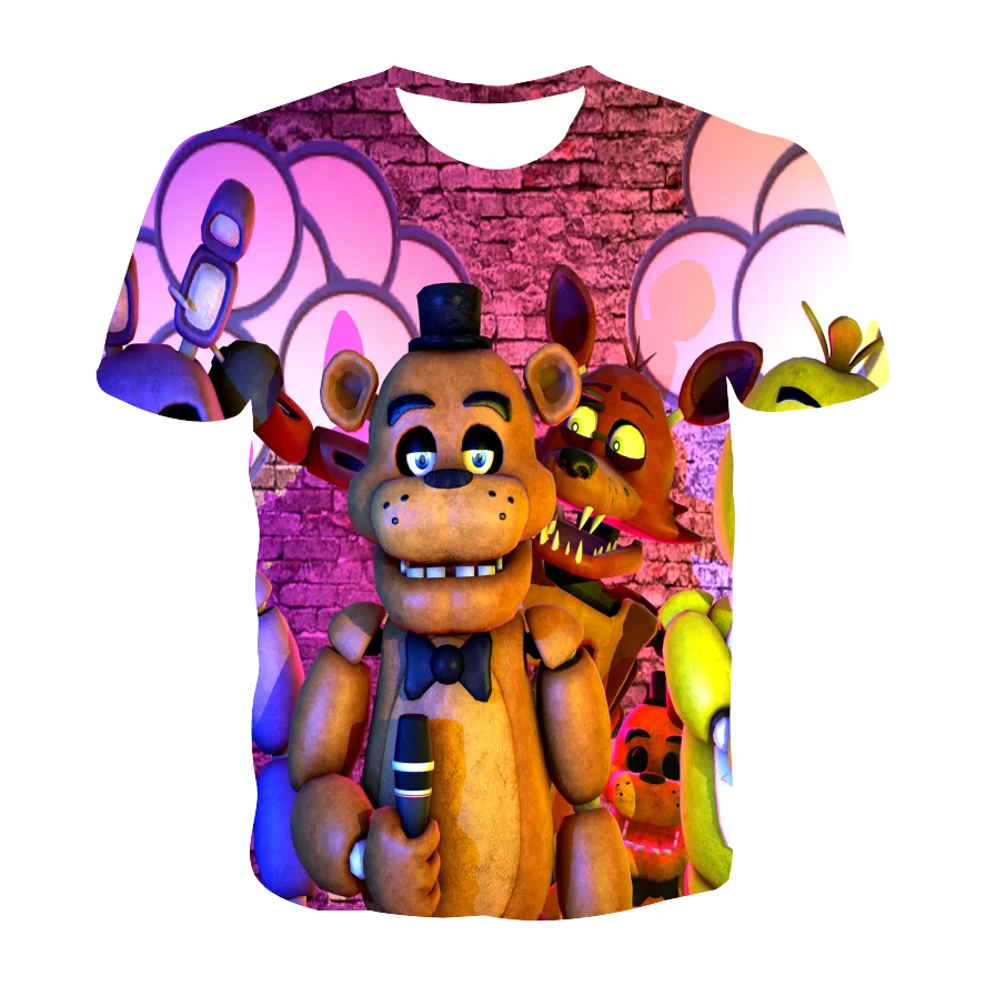 Летняя футболка для мальчиков и девочек, одежда с большим медведем, Классическая игра, аниме, Фредди пять ночей, 3D печать, топ для девочек, Веселый уличный костюм FNAF, футболки