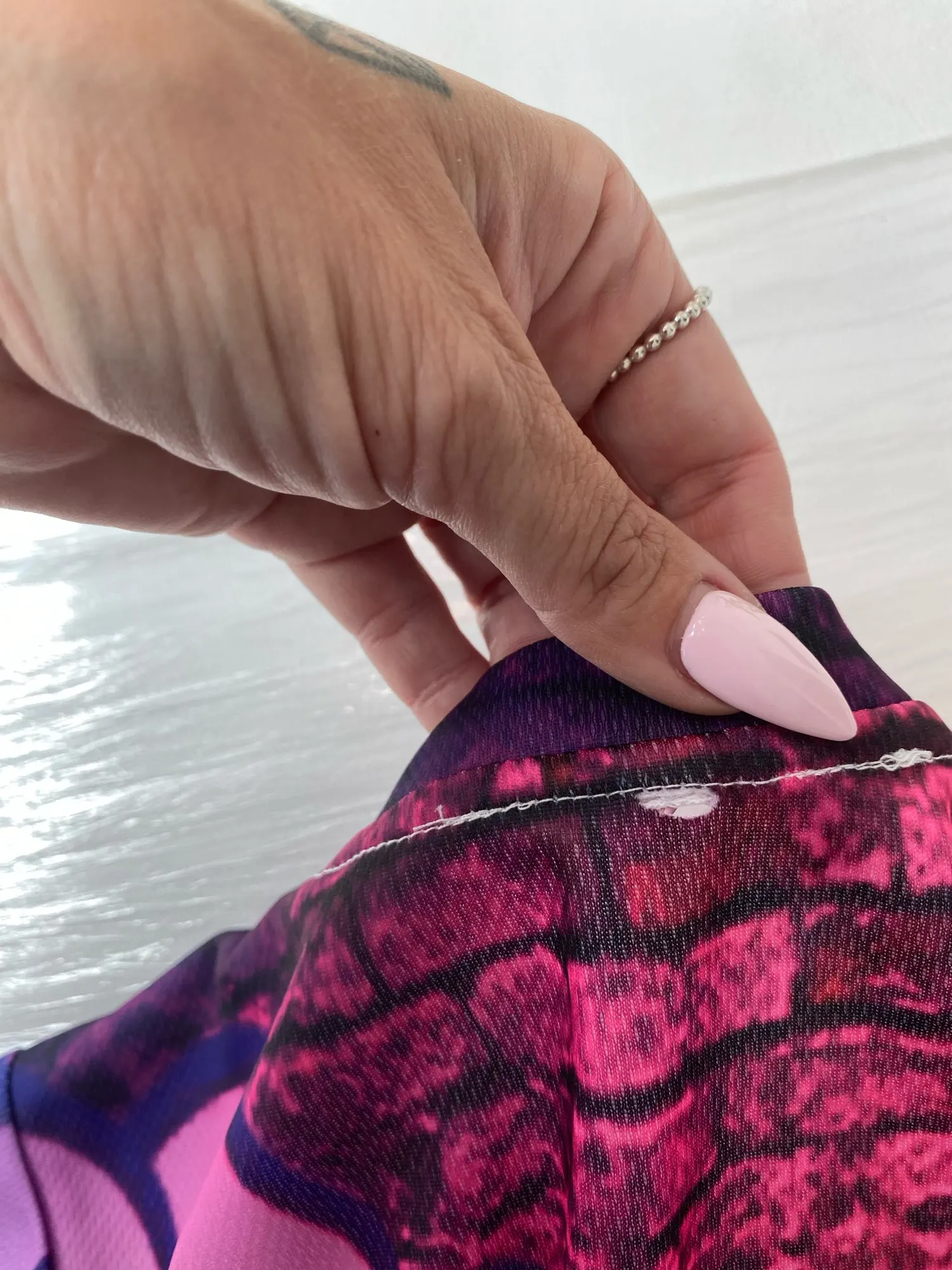 T-shirt has hole in fabric at the back of the collar. Very disappointed.