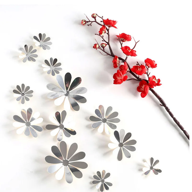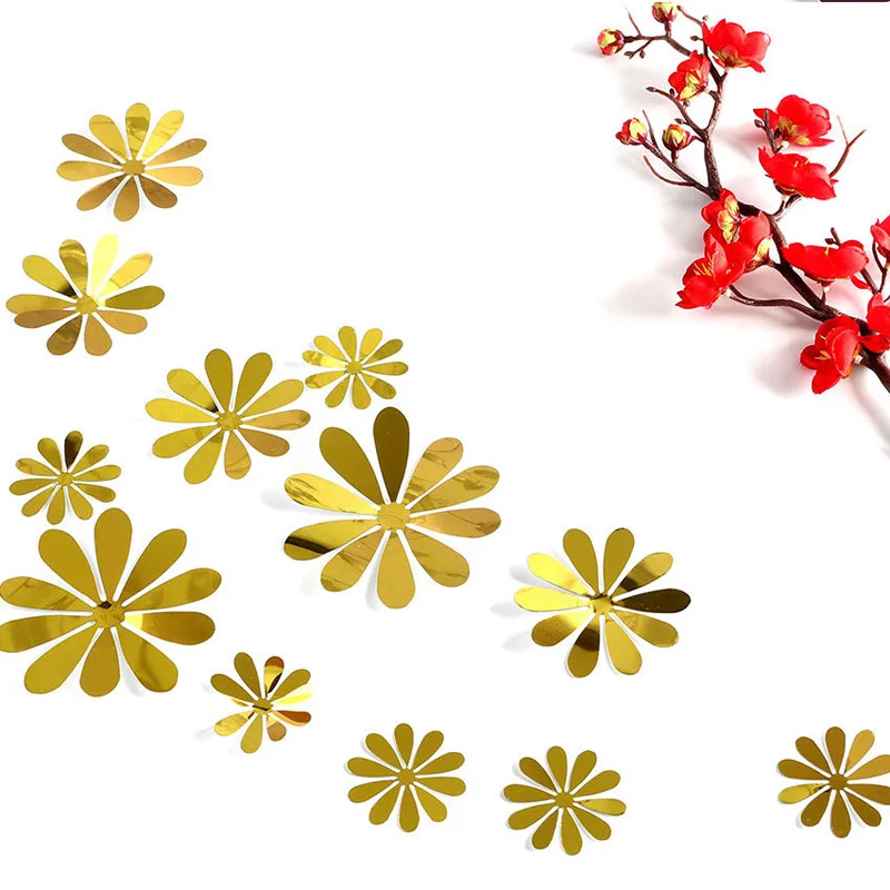 12 шт.компл. 3D стерео зеркало цветы наклейки на стену гостиная декоративные настенные наклейки "сделай сам", свадьбы, праздника, вечерние орнамент