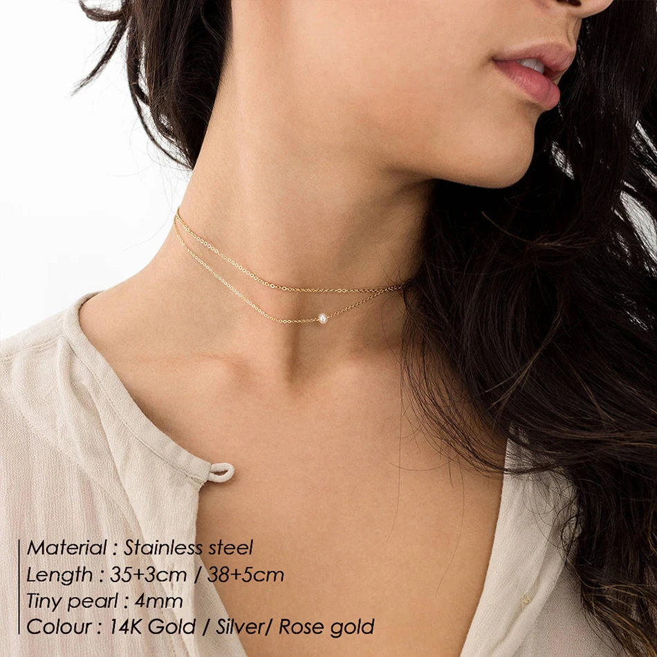 E-Manco модное многослойное ожерелье-цепочка Золотая цепочка жемчужное ожерелье для женщин Простые геометрические женские модные ожерелья-Чокеры ожерелья
