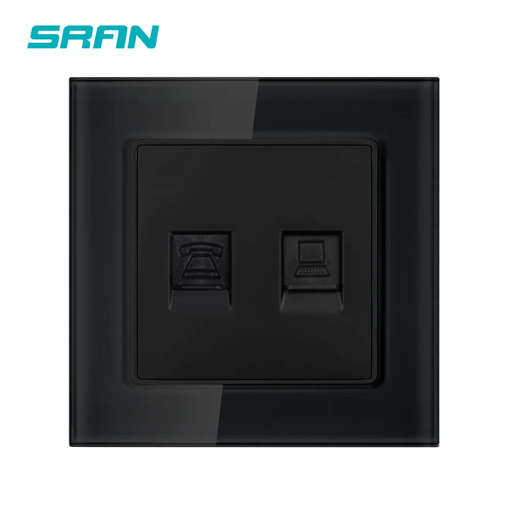 Евророзетка типа CAT5, белая кристаллическая панель из закаленного стекла, 82 мм * 82 мм, для бытового телефона и интерфейса RJ45