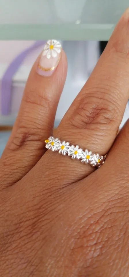Милое маленькое кольцо с маргариткой для женщин, миниатюрное белое ...