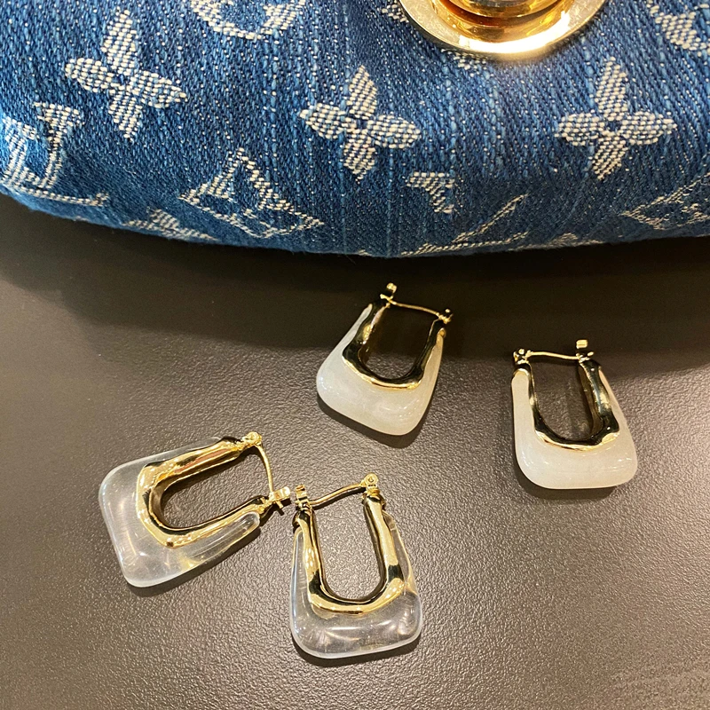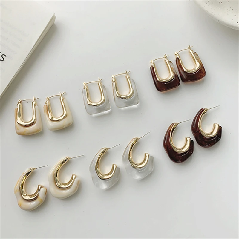 Женские Прозрачные Серьги-кольца AOMU, в стиле ретро, нестандартной геометрической формы, с-образными каплями воды, для девочек и женщин, ювелирные украшения для вечевечерние и путешествий, 2021