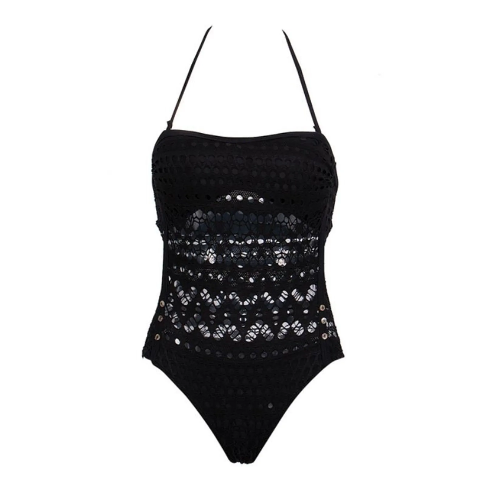 Цельный купальник, черный кружевной сетчатый пикантный пляжный женс...