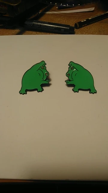 Немного темнее, чем на картинке, но это, кажется, стандартная проблема, и здесь она совсем не сильно выражена (на моём фото они, наоборот, темнее, чем в жизни). Довольно аккуратные. У одной была погнута игла, но выпрямить удалось легко. У другой капли эмали на наружном крае. Посмотрим, удастся ли очистить.
