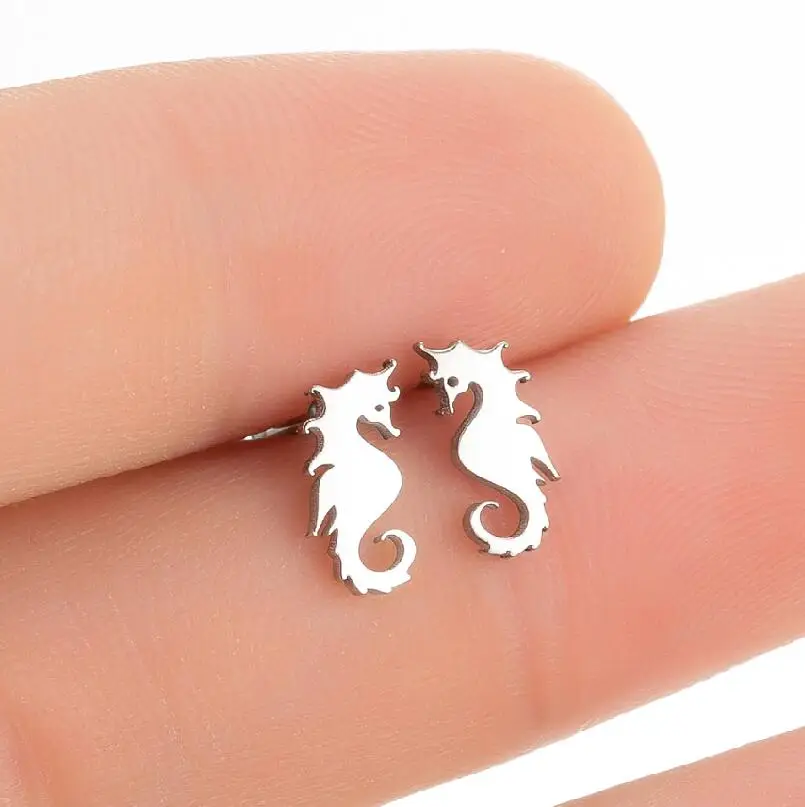 Милые серьги-гвоздики из нержавеющей стали в виде морского конька, милые маленькие серьги в виде животных для девочек, детей, девочек, женские серьги Ehnic, новинка 2021