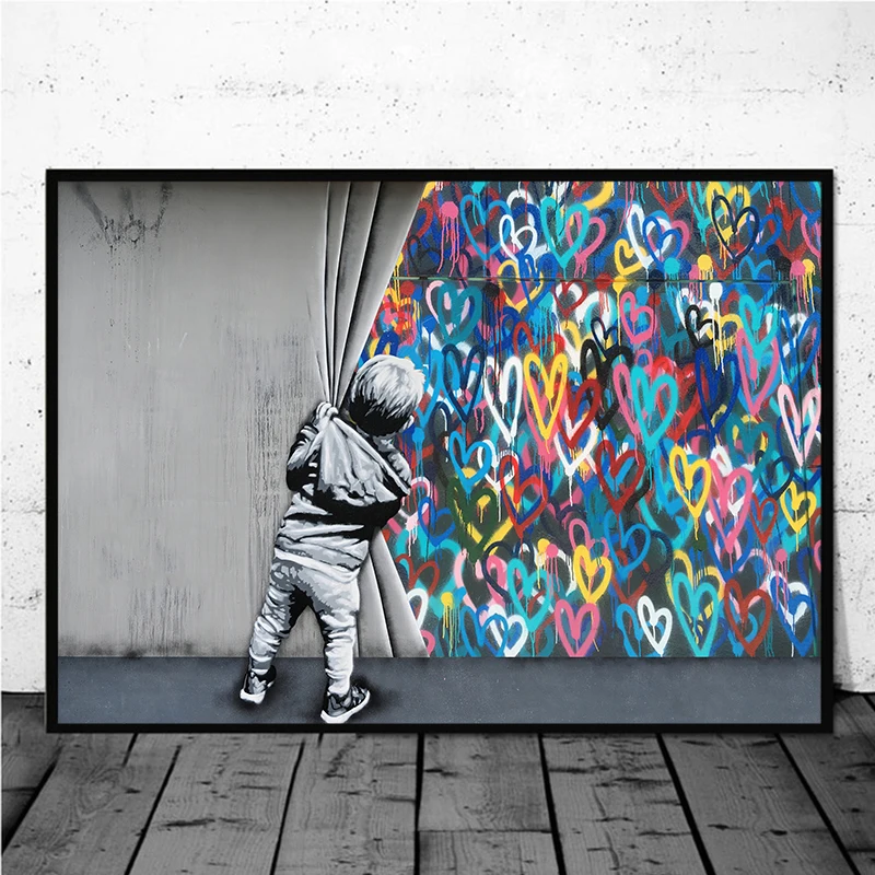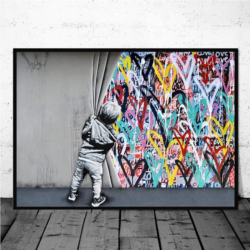 Абстрактная картина Бэнкси на холсте Детские и сердца плакаты принт...