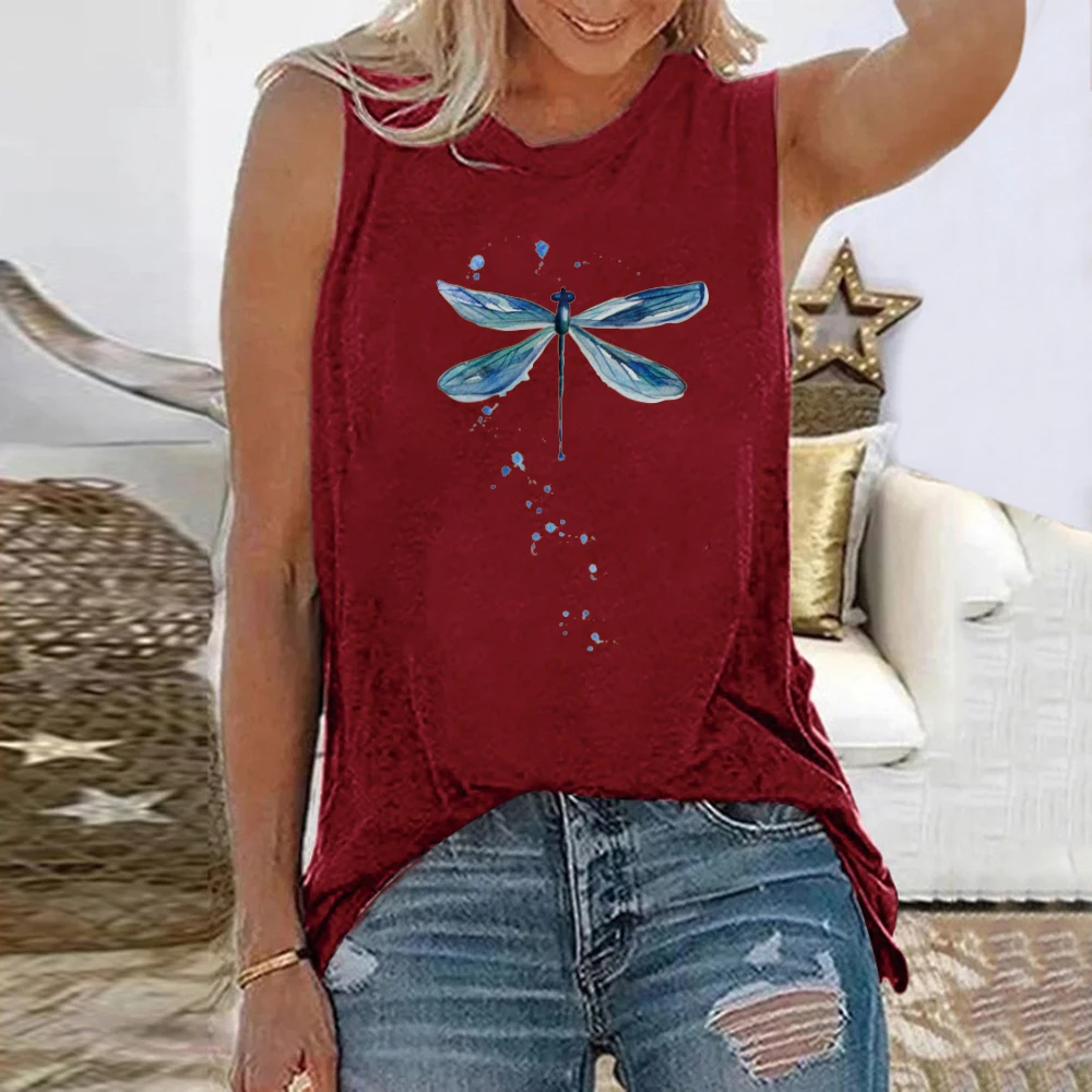 Seeyoushy Новая мода Harajuku рубашка синяя Стрекоза принт забавная Женская футболка без рукавов летний топ Femme o-образным вырезом Vogue Tees
