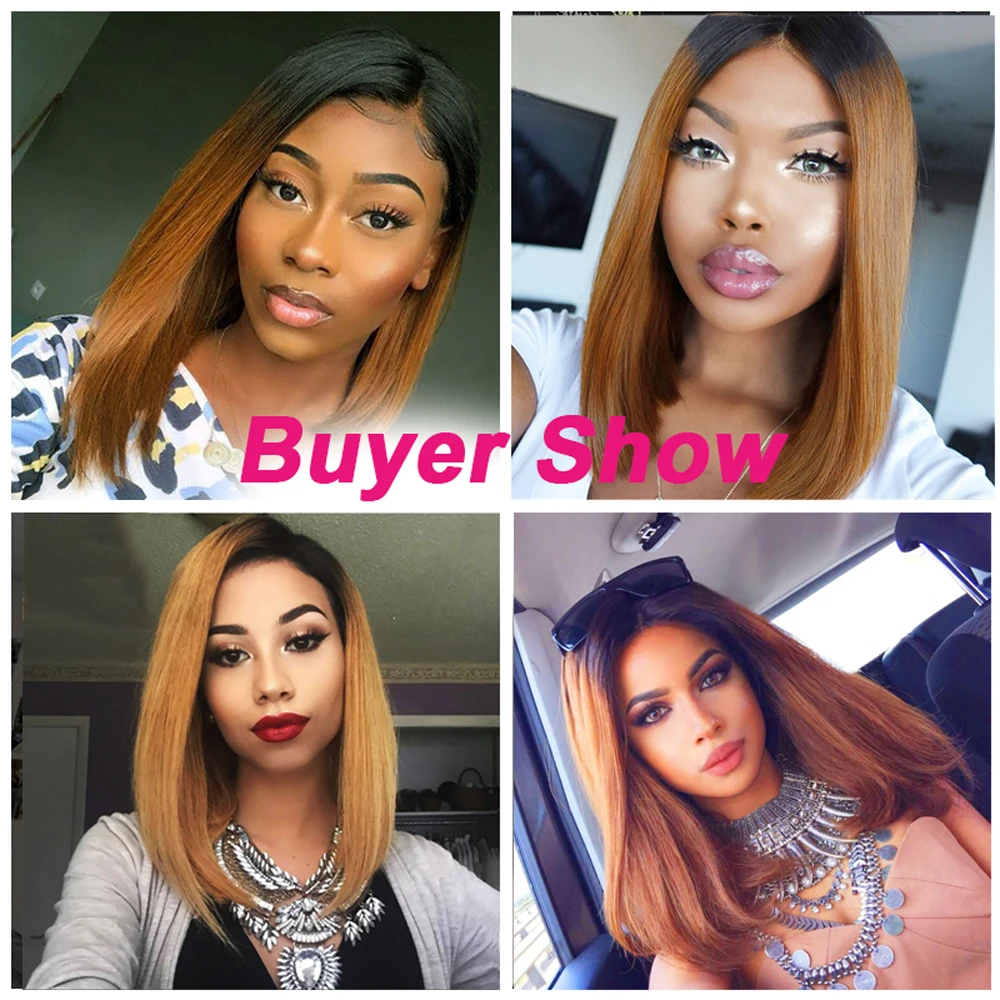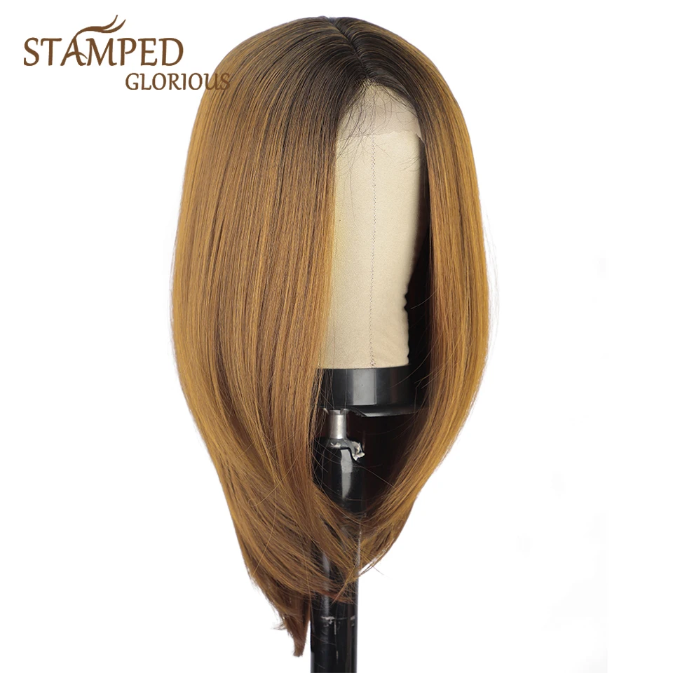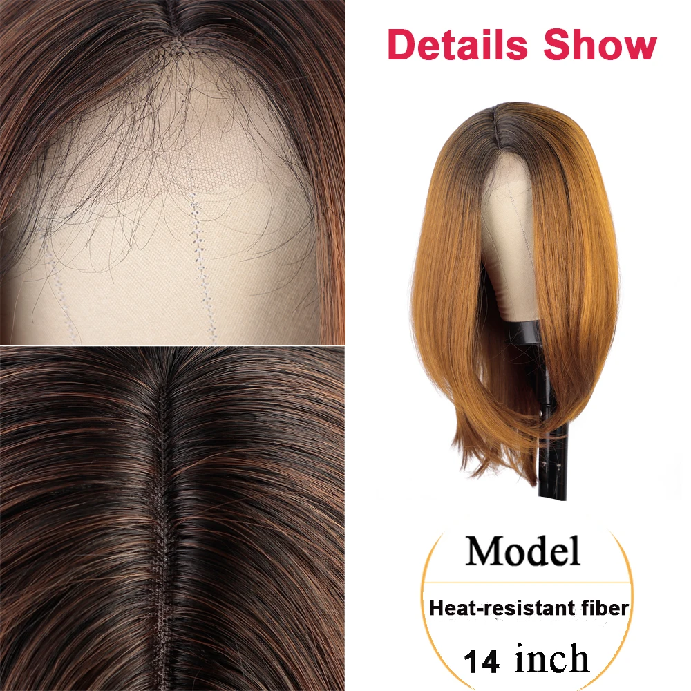 Коричневые синтетические парики Омбре для чернокожих женщин, средней части, короткий парик Боб с детскими волосами, ежедневное теплостойкое волокно