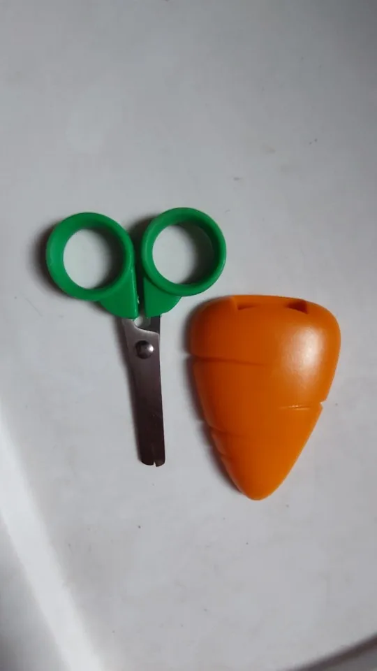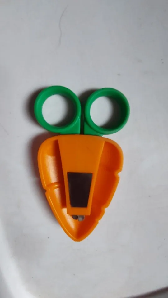 Милые детские ножницы, на морковке сзади магнитный держатель, можно повесить на дверцу холодильника или магнитную доску