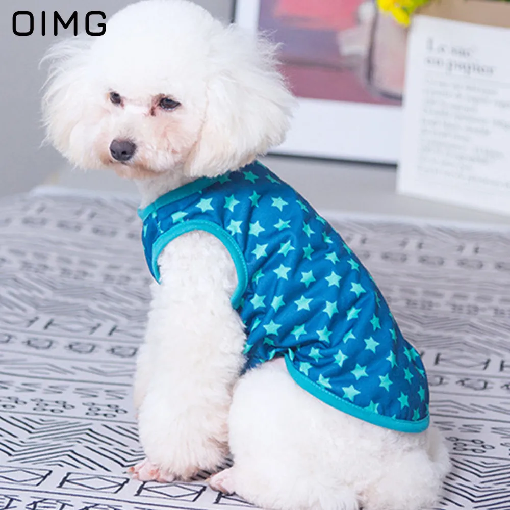 Хлопковая рубашка OIMG для кошек и собак, рубашка без рукавов с принтом звезд, красного, синего цвета, одежда для маленьких собак, одежда для домашних животных