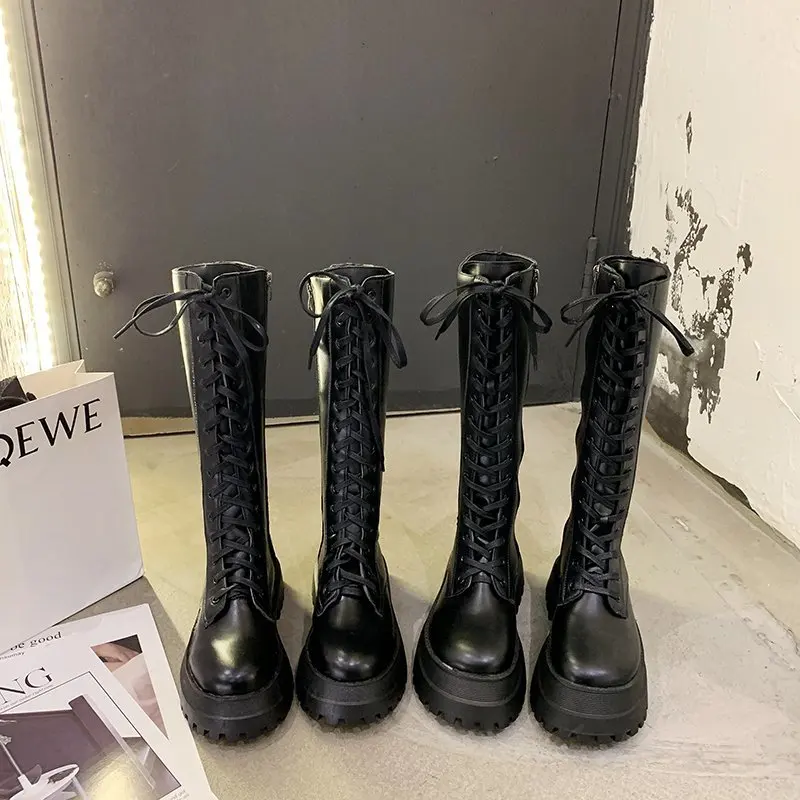 Женские сапоги из искусственной кожи WHNB, на массивной платформе, до колена, увеличивающие рост, на шнуровке, пинетки Mujer, 2021