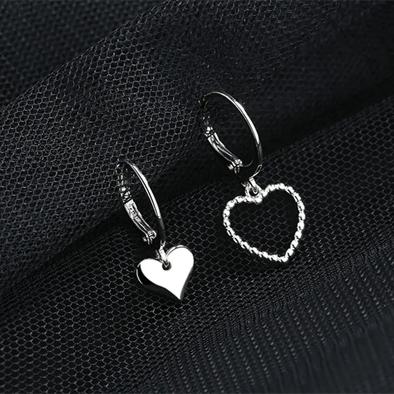Модные серьги-кольца серебряного цвета, асимметричные сердца, очаро...
