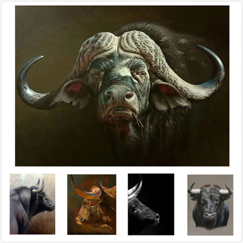 5D алмазная живопись, полная вышивка, квадратнаякруглая Алмазная мозаика бизон, буйвол, бык, стразы, картина, украшение для дома