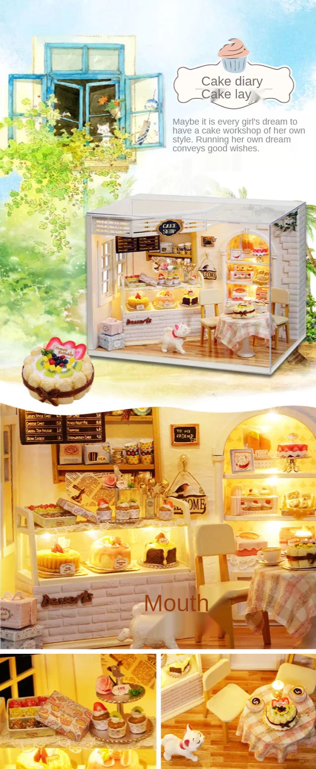 Деревянный миниатюрный кукольный домик Торт, кукольный домик ручной работы, мебель, модель, строительные комплекты, домик, игрушки для детей и взрослых, рождественские подарки