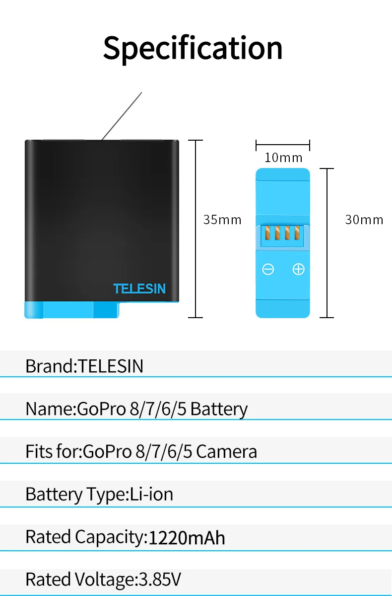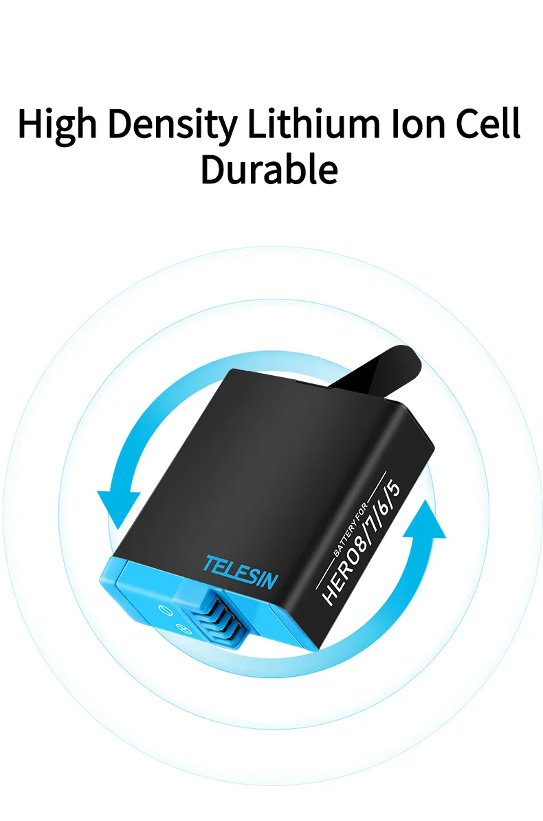 Аккумулятор TELESIN 1220 мАч литий-ионный перезаряжаемый с батарейным блоком для GoPro Hero 8 7 6 Hero 5 Black Аккумулятор аксессуары для экшн-камеры