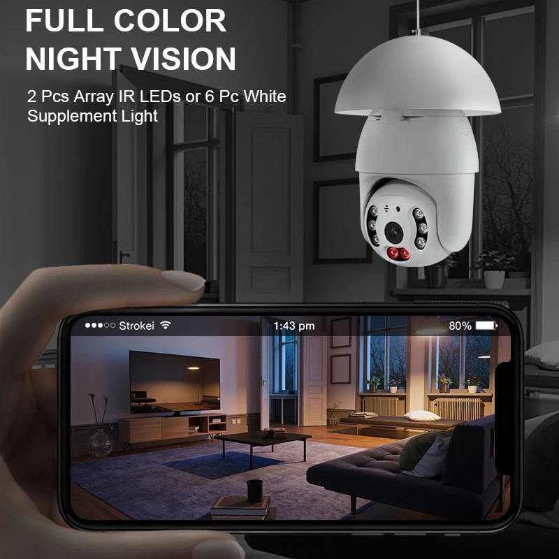1. Мобильное отслеживаниеВысокочувствительное обнаружение движения, которое перемещает отслеживание движущихся объектов. До тех пор, пока он не исчезнет с фактического расстояния мониторинга.2. Разрешение 3MP FULL HDПосмотрите все в красивом цвете и супер четкости с этой HD камерой. Это поможет вам следить за вашими милыми детьми и домашними животными. Все захваченные этой камерой будут представлены вам с помощью бесплатных и потрясающих видео.3. Простая установкаПростая и быстрая установка, может быть установлена с обычным основанием лампы4. Двусторонняя VOICEREAL-TIME ИнтеркомВстроенный микрофон и динамик, вы можете легко говорить через вашу беспроводную камеру.5. Полноцветное ночное видение2 шт. Массив ИК-светодиодов или 6 шт. белый дополнительный светильник6.TF карта и Облачное хранилищеВ то же время, он поддерживает локальное хранилище tf-карт и Облачное хранилище, чтобы быть более безопасным