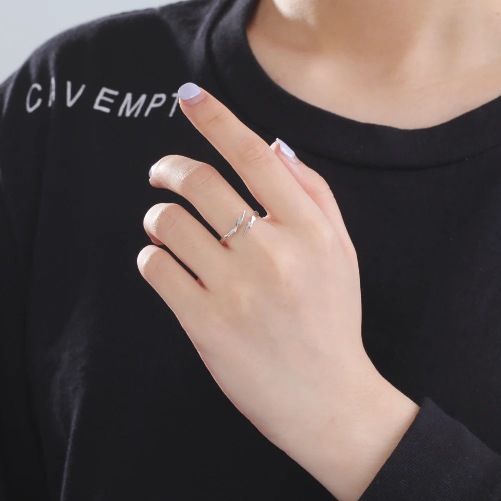 Skyrim хип-хоп Открытое кольцо молнии для женщин и мужчин из нержав...