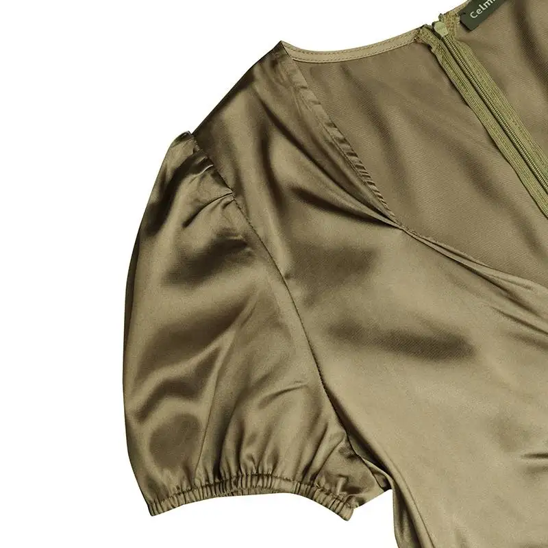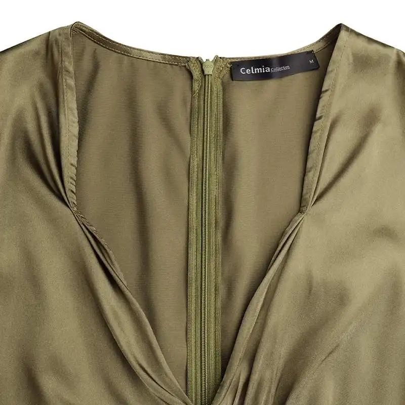 2021 модные Celmia для женщин атласное платье сексуальное платье с v-образным воротом, с пышными короткими рукавами Вечерние плиссированные макси Vestidos случайные свободные, а-силуэт, длинный халат