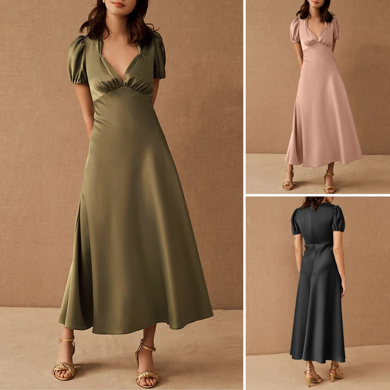 Номер моделиSolid Color Elegant Satin Silk Long Dress
