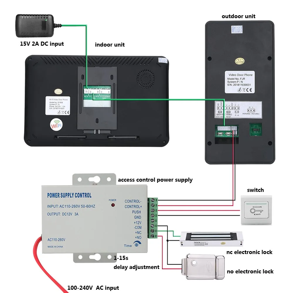 Простая установка самостоятельно с адаптером и кабелем, который мы предоставили в этом комплекте, внешний блок может подключаться к монитору внутри помещения проводным кабелем 6P. При подключении внутреннего монитора к беспроводному Wi-Fi роутеру, вы можете подключить мобильный телефон к монитору внутри помещения, затем мобильный телефон также может записывать видео или открывать дверь и т. Д. Широко используется в виллах, квартирах, домах, гостиницах, Офисы, общественные здания и так далее.