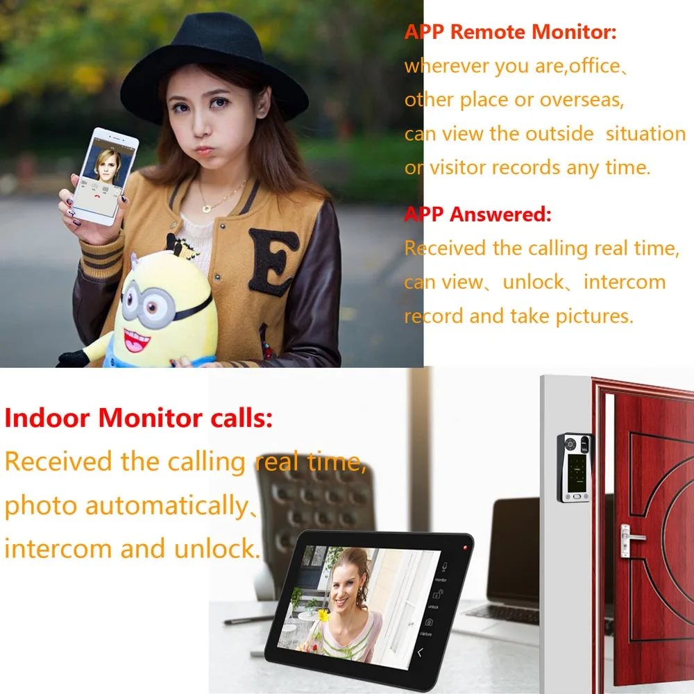 6. Внутренний монитор может поддерживать подключение 8 мобильный телефон пользователя приложения, Поддержка IOS/Android системы мобильный телефон, затем мобильный телефон может просматривать и разблокировать.